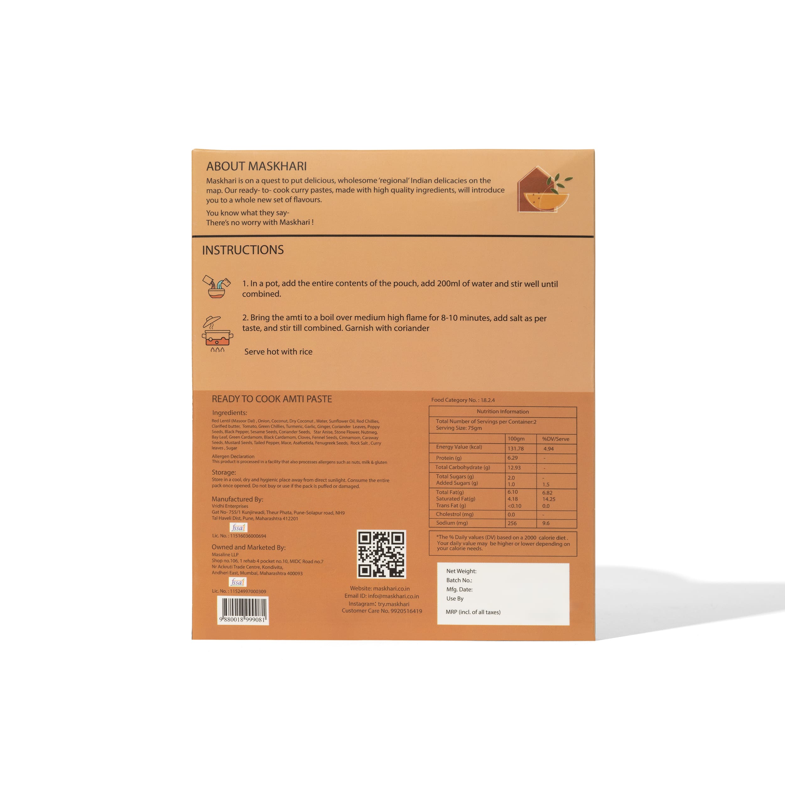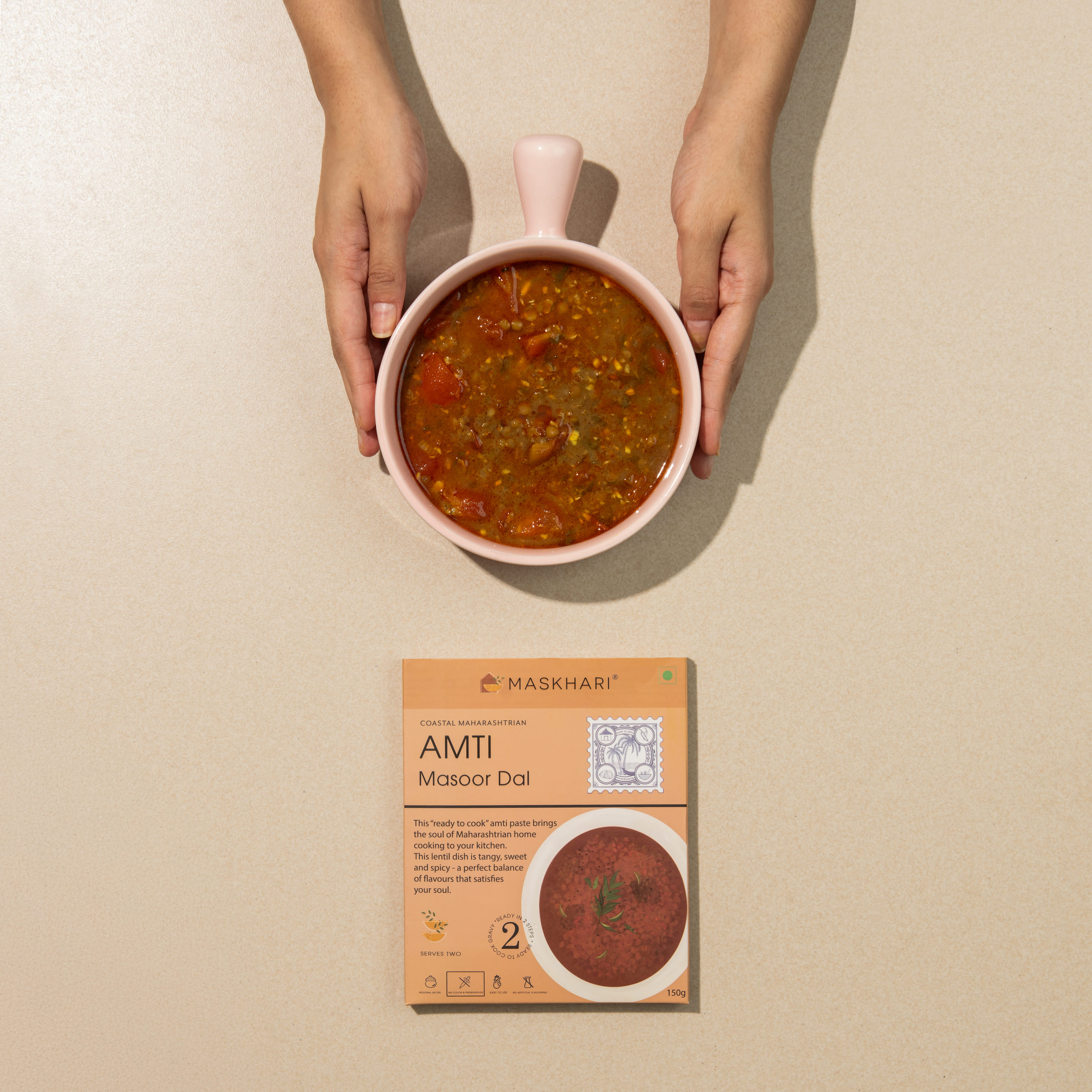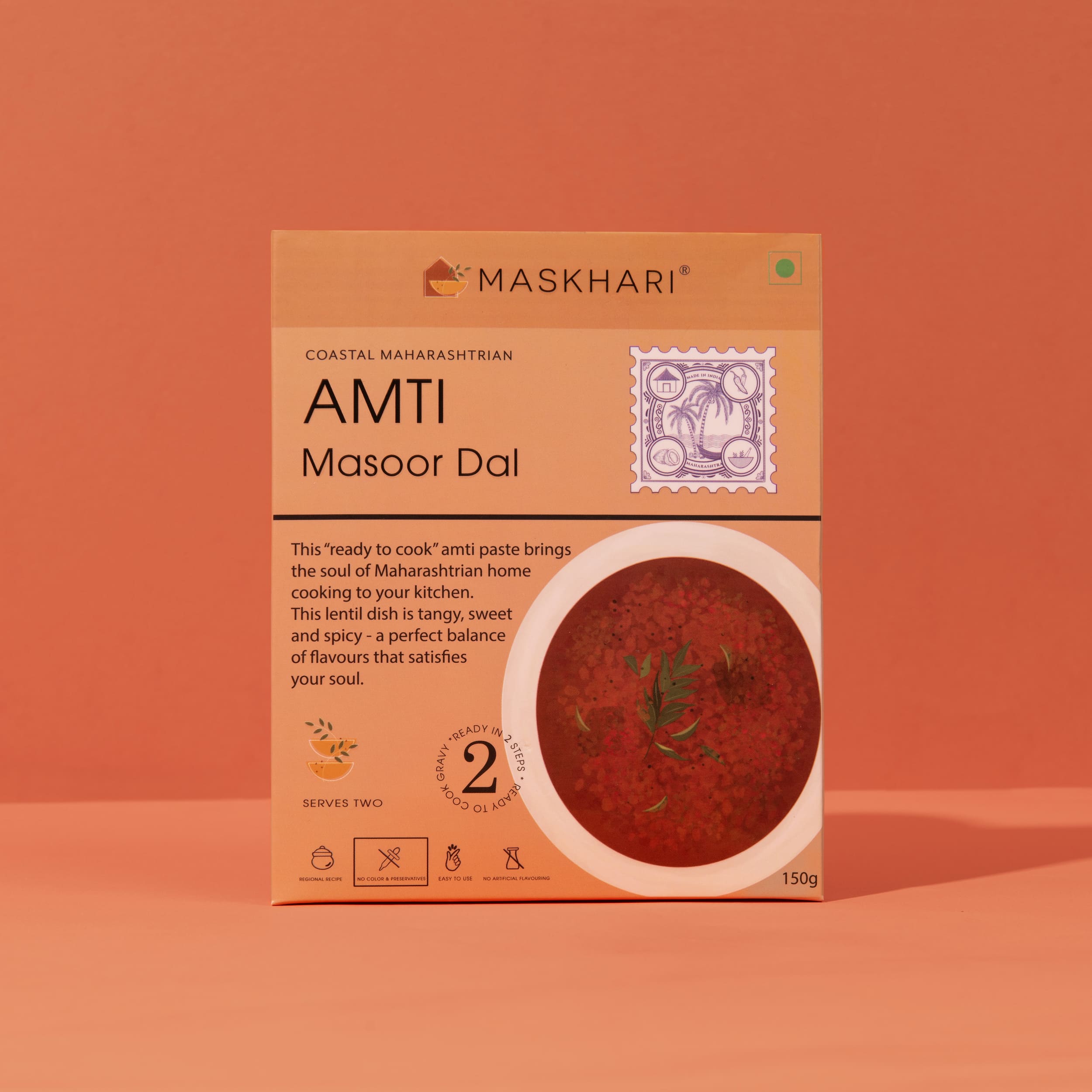 This “ready to cook” amti paste brings the soul of Maharashtrian home cooking to your kitchen. This lentil dish is tangy, sweet and spicy – a perfect balance of flavours that satisfies your soul.